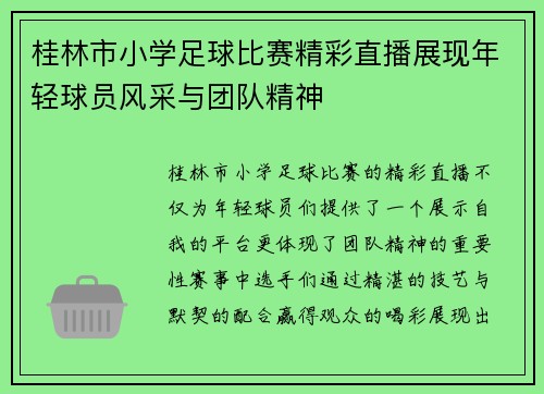 桂林市小学足球比赛精彩直播展现年轻球员风采与团队精神
